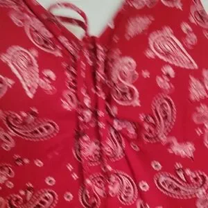 Color: Red with white/black paisley pattern