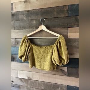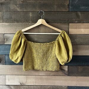 Modern Wild Fable Mustard Yellow Smocked Puff Sleeve Crop Top