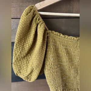 Modern Wild Fable Mustard Yellow Smocked Puff Sleeve Crop Top – Size M