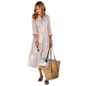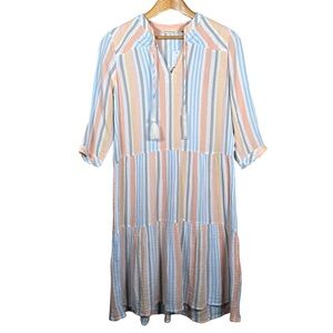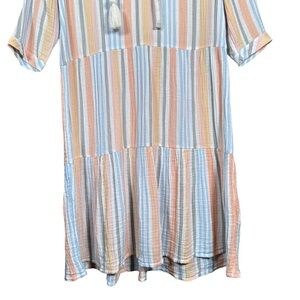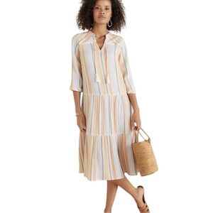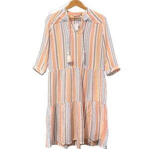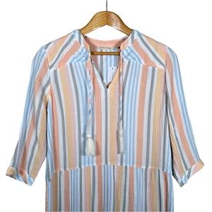 SOFT SURROUNDINGS Striped Gauze Tasseled Midi Smock Dress