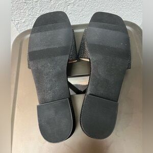 Ann Taylor Black Woven Slide Sandals with Gold Chain