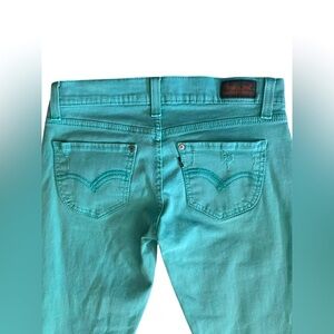 Stylish teal jeans perfect for any casual outing. Comfortable fit and trendy design make these a wardrobe essential. Made by: Levi’s Jeans.