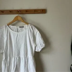 Everlane women’s tiered midi dress in cotton polis. Classic white. It has pockets! Size 6 women’s. Gently used and ready for a new home!