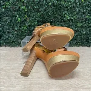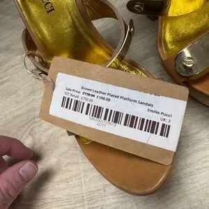 Emilio Pucci Brown Leather Plated Platform Sandals - W6