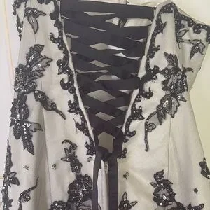 Mori Lee Black and White prom quinceañera Dress sz 9/10 tool lace sequins beauty