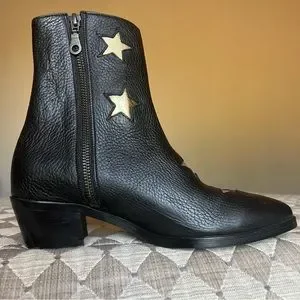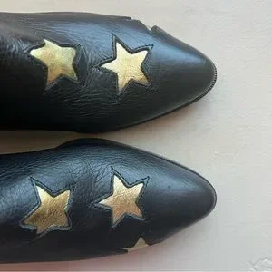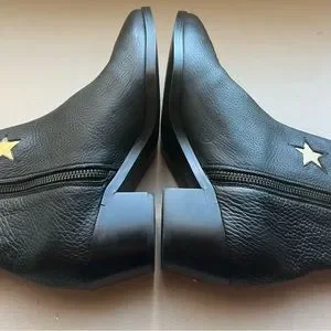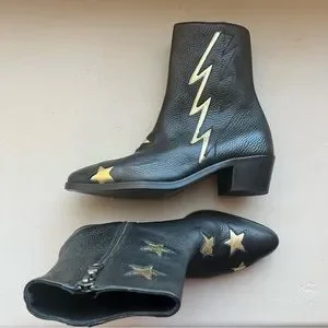 MODERN VICE Golden Bolt Black & Metallic Gold Leather Ankle Boots Size EU 35/US5