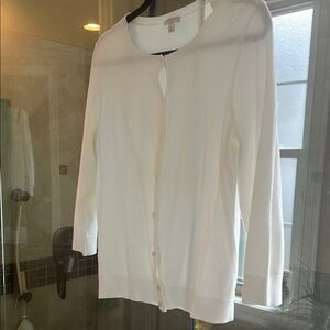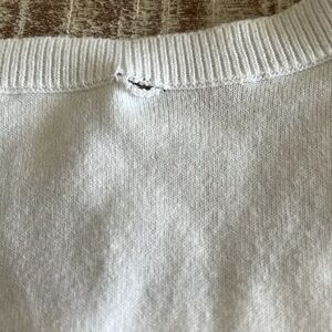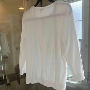 This elegant Talbot’s 3/4 length sleeve white cardigan sweater is perfect for any occasion. Its classic design offers a versatile look that pairs well with any outfit. Small tear by tag, can darn easily