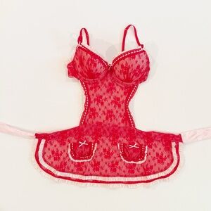 Victoria’s Secret 34C French Maid Red Lace Apron Lingerie