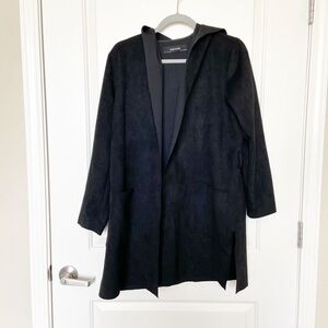 ZARA • Black Faux Suede Hooded Jacket Sz S