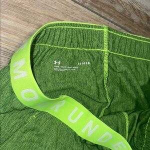 Experience ultimate comfort and style with these green athletic shorts from Under Armour, featuring a lightweight material perfect for running or workouts. The striking neon trim adds a modern touch to the classic design, ensuring you stand out during any activity. With a curved hem and a contrasting waistband, these shorts are both functional and fashionable.