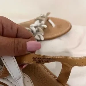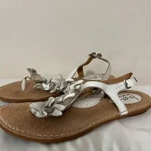B.O.C. White leather flat sandal in size 9. The sandal is in gently worn condition. Some minimal signs of where can be seen on the sole of the shoe. Offers welcome.
