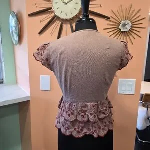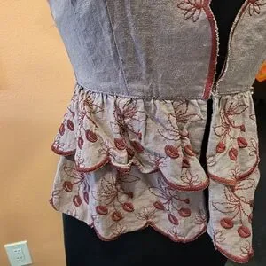 Vintage Y2K Nanette Lepore 10 Girlie Embroidered Floral Ruffle Top Babydoll