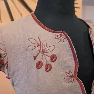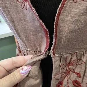 tan with red embroidery
