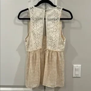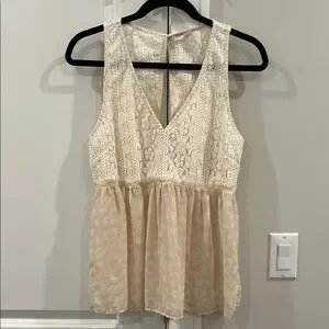 Elegant cream lace sleeveless top with a delicate design. Perfect for any occasion.