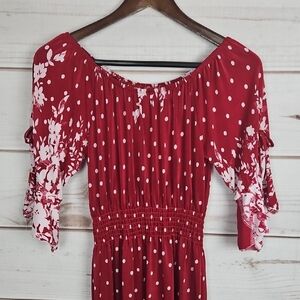Seven Islands Red & White Polka Dot Off-Shoulder Sundress - Small