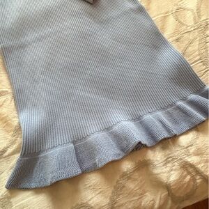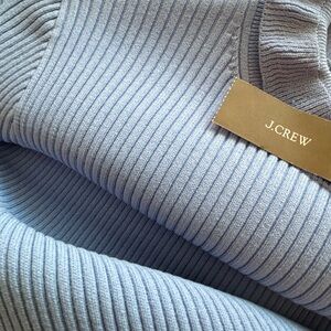 This J. Crew dress features a sleek sheath silhouette in a striking blue ribbed knit, perfect for casual or work settings. The long sleeves and mock neck add a touch of sophistication, while the mandarin collar enhances its modern appeal. Crafted for comfort and style, this dress is a versatile addition to any wardrobe.