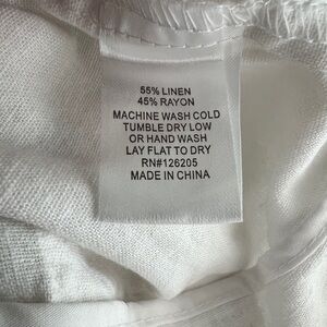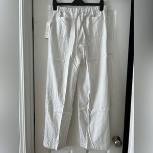 NWT Just Living Linen White Pants. Elastic waist, button closure, and drawstring. Have 2 front pockets. Very comfortable for the summer heat!