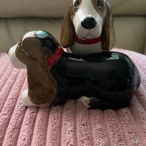 Add charm to your dining table with these adorable ceramic Bassett Hound dog salt and pepper shakers. Featuring a delightful brown and white design, they are perfect for dog lovers.