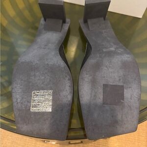 Elegant black leather sandals. Square toe design. Comfortable and stylish. Contrast stitch calfskin leather with rubber sole.