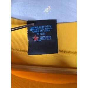 Add some nostalgia to your wardrobe with this vintage 90s SOFFE Choice yellow long sleeve mock neck t-shirt. Featuring an eagles logo, this shirt is made of a cotton blend and 100% cotton, ensuring comfort and durability. The XL size with a regular fit is perfect for men who want to show off their love for the 90s theme. The shirt is solid colored, with a mock neck and long sleeves, making it suitable for any occasion. This shirt is a must-have for any vintage clothing enthusiast and is proudly made in the United States.