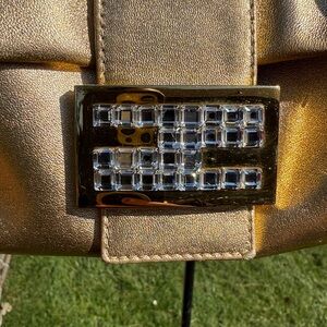 EUC RARE Vintage Fendi Mama Baguette Gold Metallic Rhinestone Shoulder Bag Rare