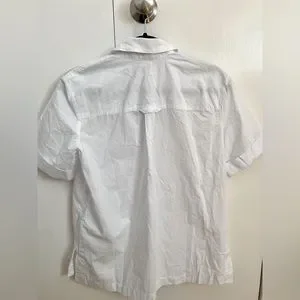 Classic white button-down short sleeve shirt. Perfect for the office or the beach! Front pocket detail. Reposhing without the tag, but hasn’t been worn.