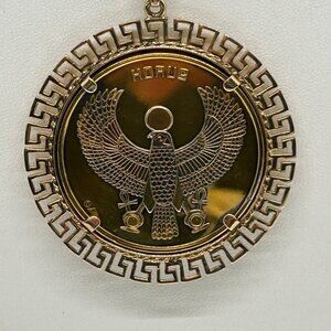 Tutankhamun Gold-tone Coin Pendant Necklace Egyptian Symbols & Greek Key Border