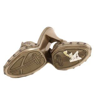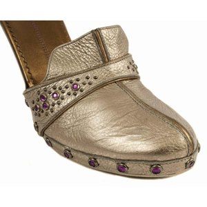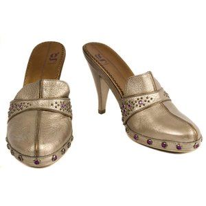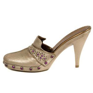 COLE HAAN G Series Metallic Pewter Leather Jeweled Accent Mule Heels