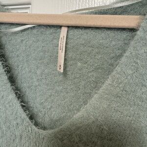 Cozy and stylish sweater. Features a V-neck and long sleeves. Perfect for layering.