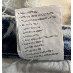 Rancan Women's XL Blue Denim Acid Washed Distressed Cut Off Jean shorts offer a stylish blend of comfort and edge. Crafted from a cotton, polyester, and spandex blend, these shorts feature a unique acid-washed finish and distressed details, perfect for casual wear.