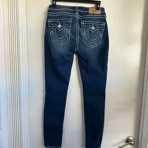 True Religion Women's Blue Denim Curvy Skinny Stretchy Jeans Size 27