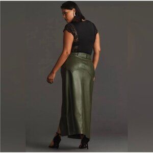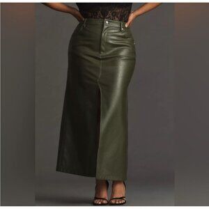 Pilcro The Madi Faux Leather Front Slit Maxi Skirt Anthropologie Army Green Size