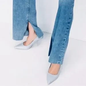 🩵 ZARA LEATHER HEELS POINTED TOE BLUE 🩵