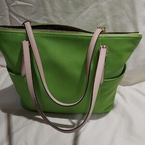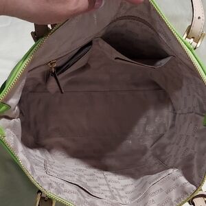 Stylish and spacious, this Michael Kors tote bag in vibrant green is perfect for any occasion. The elegant design and high-quality materials make it a must-have accessory. Fun colorful bag! Smoke and pet free home. Excellent condition. Never touched the floor!