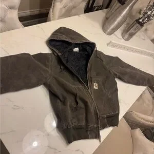 Vintage Carhartt J06TMB medium with faded brown washed duck workwear quilt lined hooded jacket. Zipper front. Hooded. Worn beautifully.