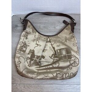 COACH HORSE AND CARRIAGE SATIN PURSE BAG TAN WITH DARKER TAN CARRIAGE
