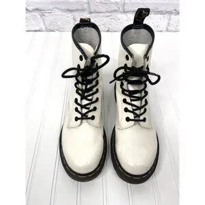 DR. MARTENS Women's White Leather Lace Up Combat Boot US 6