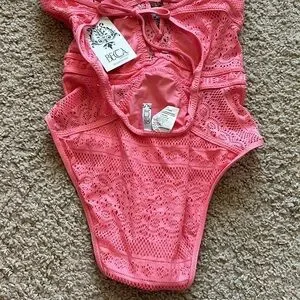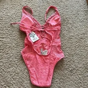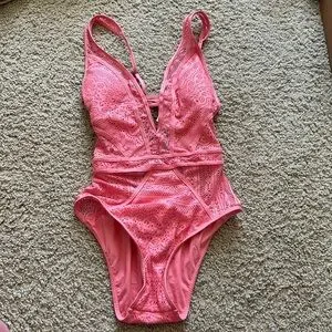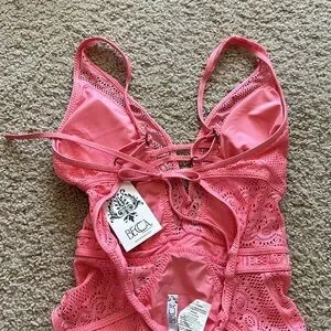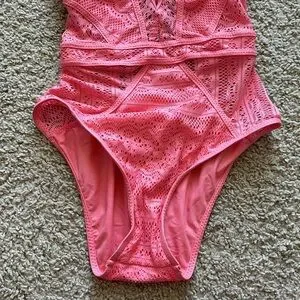 Becca Swim Coral Pink Cut Out Lace One Piece Swimsuit - Small