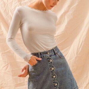 Stylish denim skirt with a button-up front. Perfect for casual outings. Pair it with your favorite top for a chic look.