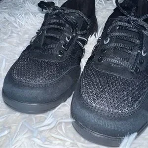 Preowned; good condition, a bit of fading in the front of the sneakers, soles show light wear, insoles are clean. See pictures for condition.