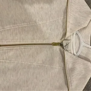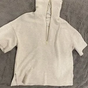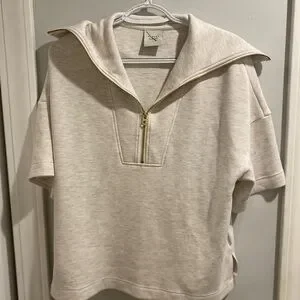 Stylish cream short sleeve sweatshirt with a zip-up collar. Perfect for casual wear. Worn once, like new.