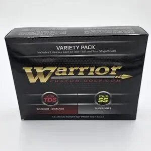 New Warrior Custom Golf variety pack featuring Tour TDS and Tour SS golf balls. Includes titanium distance and super soft options.