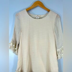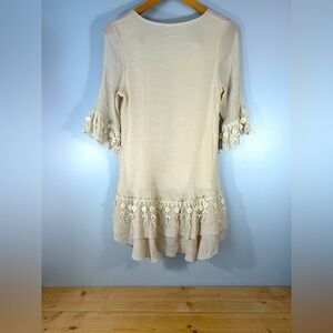Elegant Cream Lace Trim Women's Dress Size Small