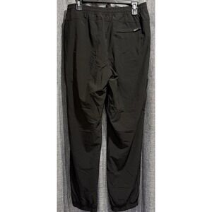 Crafted for both style and comfort, these Eddie Bauer black fleece-lined hiking pants are a versatile addition to your wardrobe. Size 8 and designed with an athletic fit, they feature a cozy mid-rise and a convenient elastic waistband with a drawstring closure for an adjustable fit. The pants are detailed with a subtle logo accent and practical pockets, making them ideal for casual wear or travel. The blend of polyester and elastane materials ensures durability and stretch, accommodating a 30-inch inseam and 30-inch waist size. The pull-on style combines with a flat front design to offer a sleek look, while the zip closure adds functionality. Care is easy with machine washability, ensuring these pants remain a go-to choice for outdoor adventures or everyday wear during the cooler seasons.