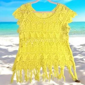 Unbranded Yellow Crochet Fringe Crop Top S/M