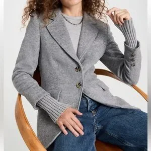 When your runway is a city sidewalk, grab this slim fit, recycled wool-blend blazer. There’s faux horn buttons, front flap pockets, delicate stitching details and a brushed, soft finish. But our favorite part is the cotton-cashmere ribbed cuffs for when walking to work is your very own fashion show.