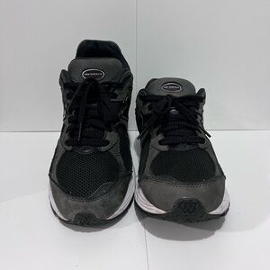 Preowned, well loved. Mainly used for indoor running. Some water spilled on the front of the shoe and messed up the suede a little (view last photos) but I believe they can be cleaned. Aside from that these new balance are still in great shape and still got plenty of life left! Great and super comfortable for any outdoor activity or perfect for a pair of gym shoes. Any other questions feel free to ask 👍🏽.