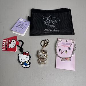 Hello Kitty Sanrio My Melody Kuromi Accessory Lot Keychains Necklace Mesh Pouch Bag