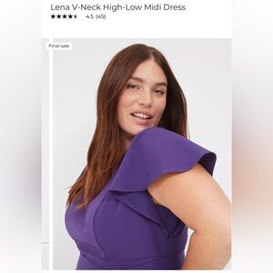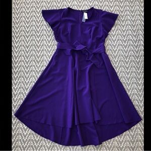 Lane Bryant Lena v-neck high low midi dress size 18, short flutter sleeves, pockets, self tie belt attached to back of dress, hidden back zipper closure