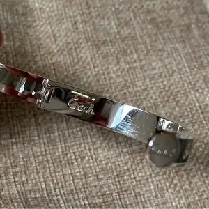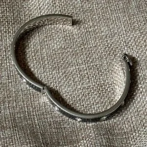 Coach Hinged bangle Deep gray enamel with sparkle crystals Silver tone ~1/2” thick, ~2 1/4” diameter